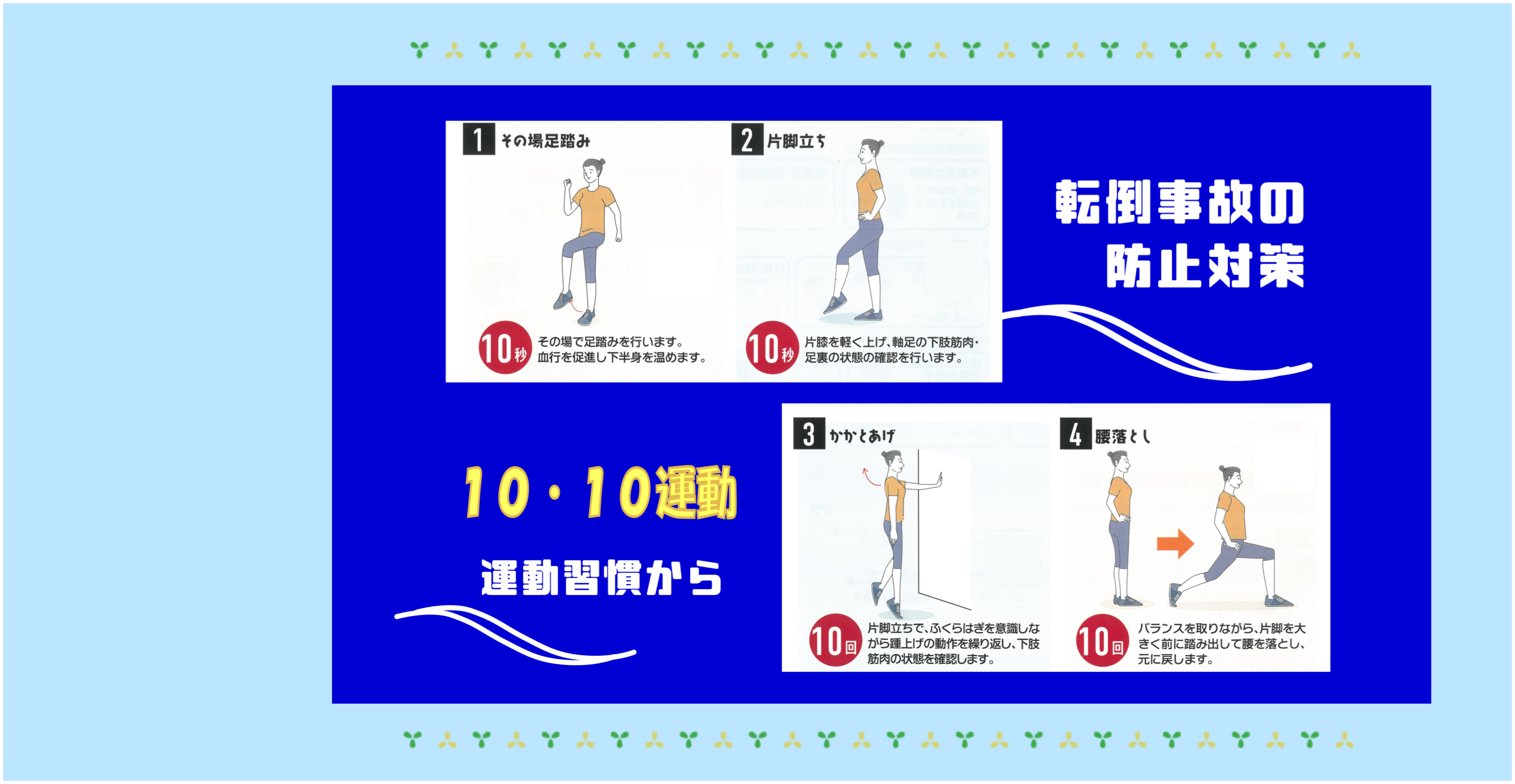 ◆転倒事故防止対策の運動動画をご紹介します!1つずつでも構いません、無理なく始めましょう。